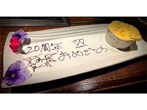 食事の最後には、メッセージプレートのデザートが花火とともに登場🎂